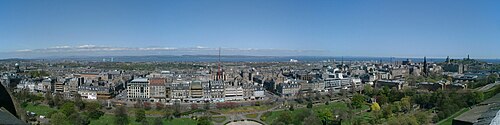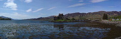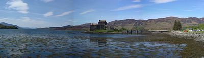 More subtle errors are at the right of the castle, where there appear to be two vertical bands in the sky. Look where these bands touch the hill, at the middle one the stitching program misaligned, producing a ghost. Also, the program feathers the transitions. While this avoids a visible edge, one can see that in such feathering region, image noise is reduced, which makes these parts stand out from the rest of the image.