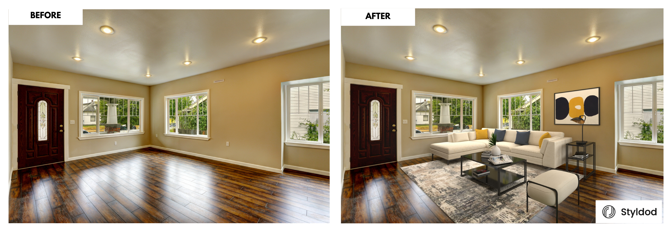 Elevate your virtual staging experience with Styldod! This intuitive platform enables you to upload images of the living room and witness its remarkable transformation into a captivating industrial space. It provides an affordable opportunity to explore various design concepts and discover the ideal industrial aesthetic for your living area.