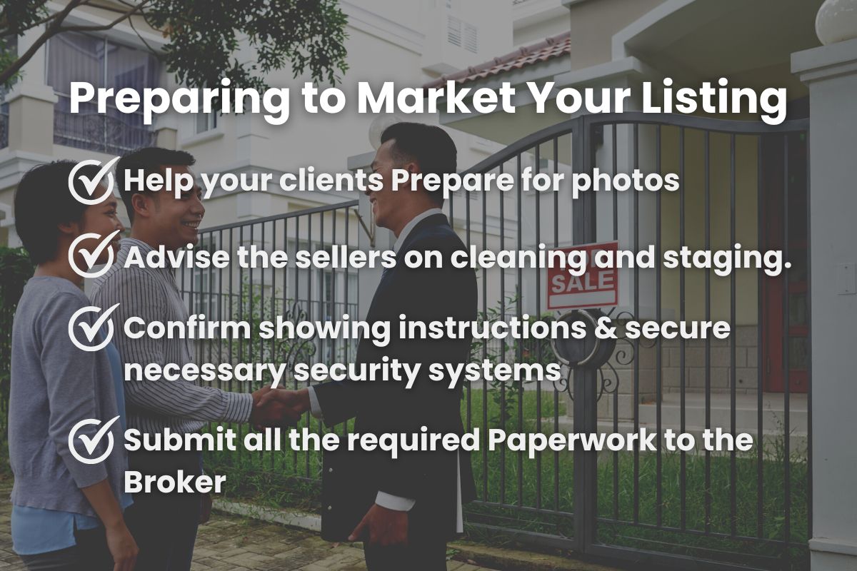 As a real estate agent, it's important to make sure all necessary listing paperwork is submitted to your broker. This may include the listing agreement, property details, and any other relevant documents related to the property.
